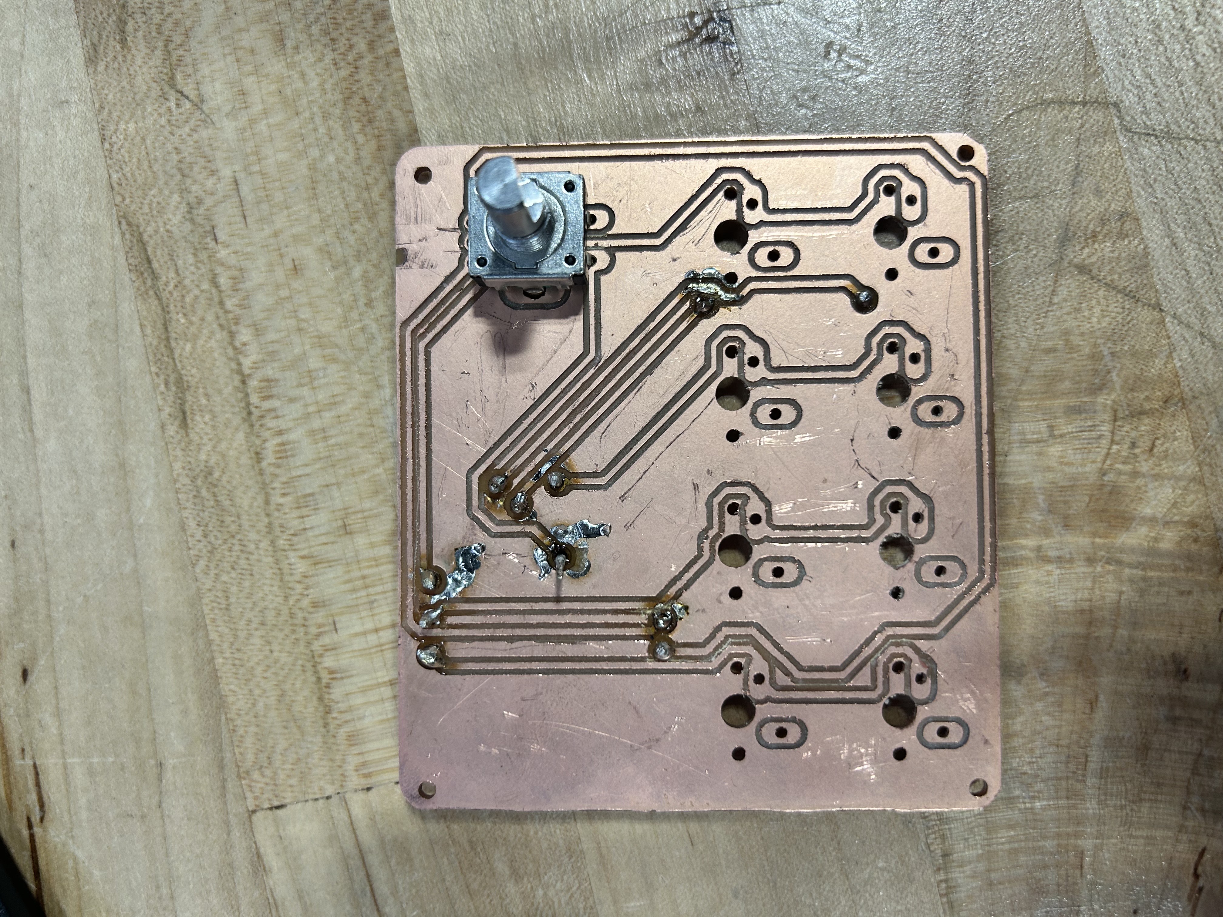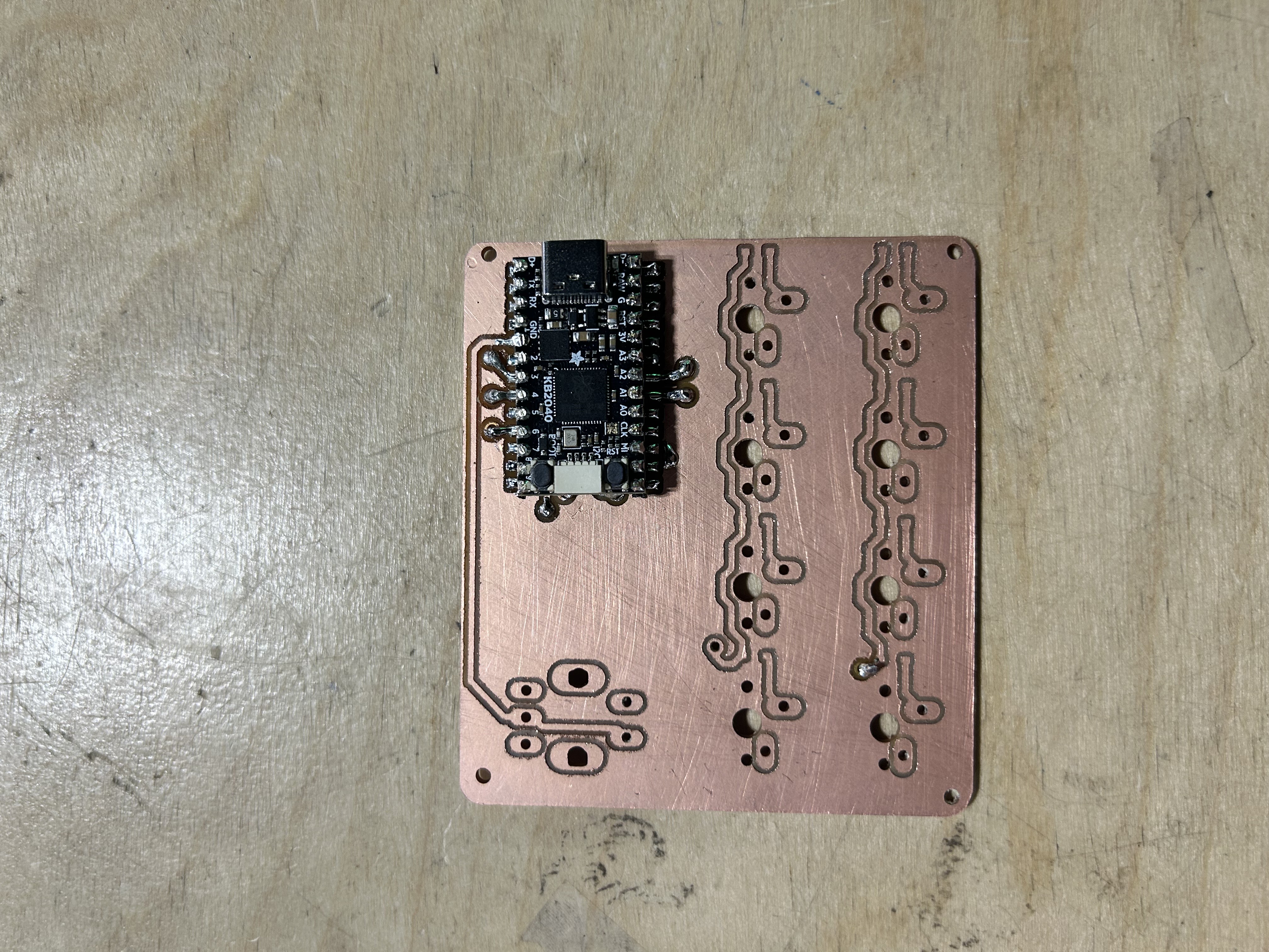 since i'm quite inexperienced with soldering, and the pads for the via are quite small, i ended up burning one of the pads and breaking a trace.