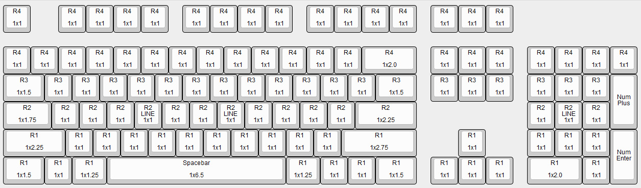 you may have noticed that each keycap has different dimensions as well based on their row (the "r") this meant i had to create multiple keycaps