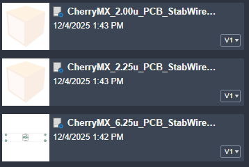 with this all done, i put all the new footprints in the library and stole the symbols for the normal switches for it. i plan on creating a cardboard pcb of just the keys with stabilizers to test the ones i'm buying to see if it fits before getting the board shipped