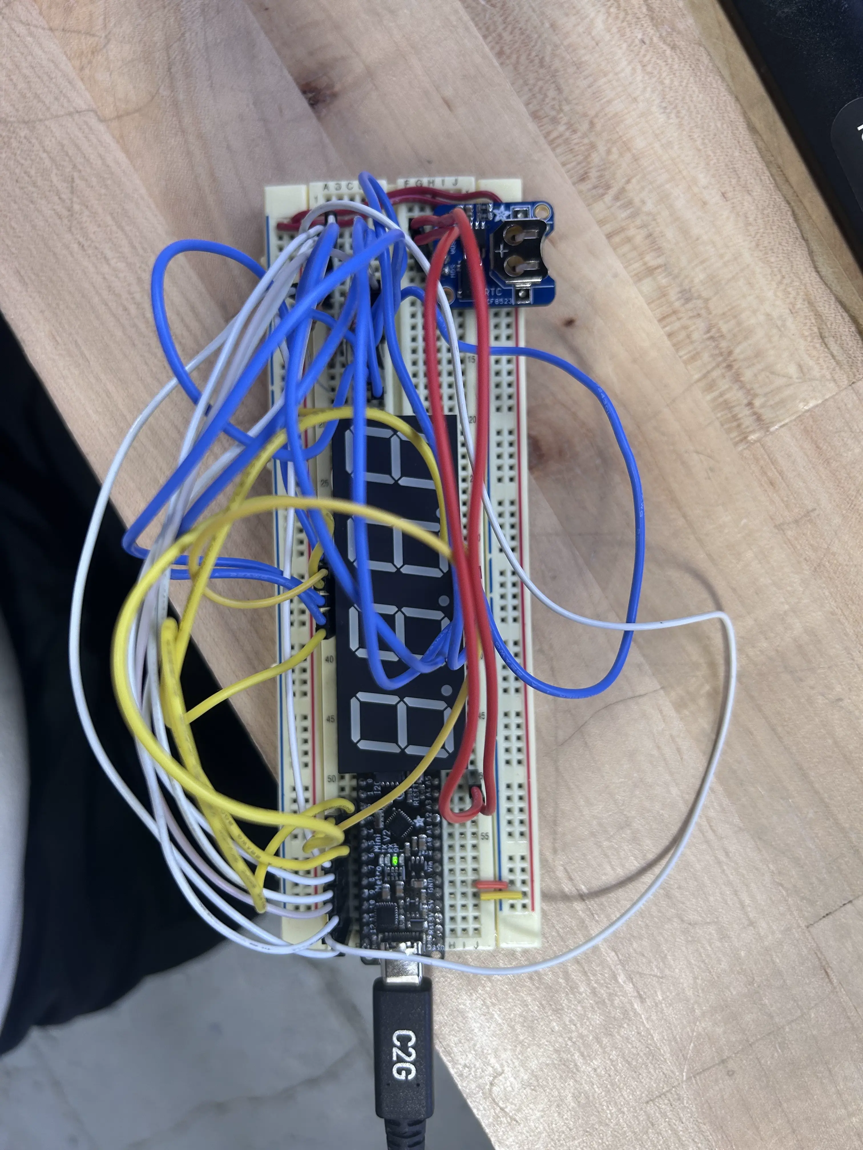 i spent most of my time trying to get a display, and i realized that it was due to having rtc library code in between seven segment code. (which impacted it for some reason).
