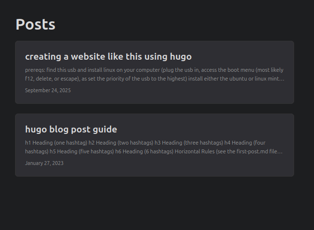 most of my time this week was spent making a website to provide some instructions on using hugo for when the sophomores eventually have to create their own websites
