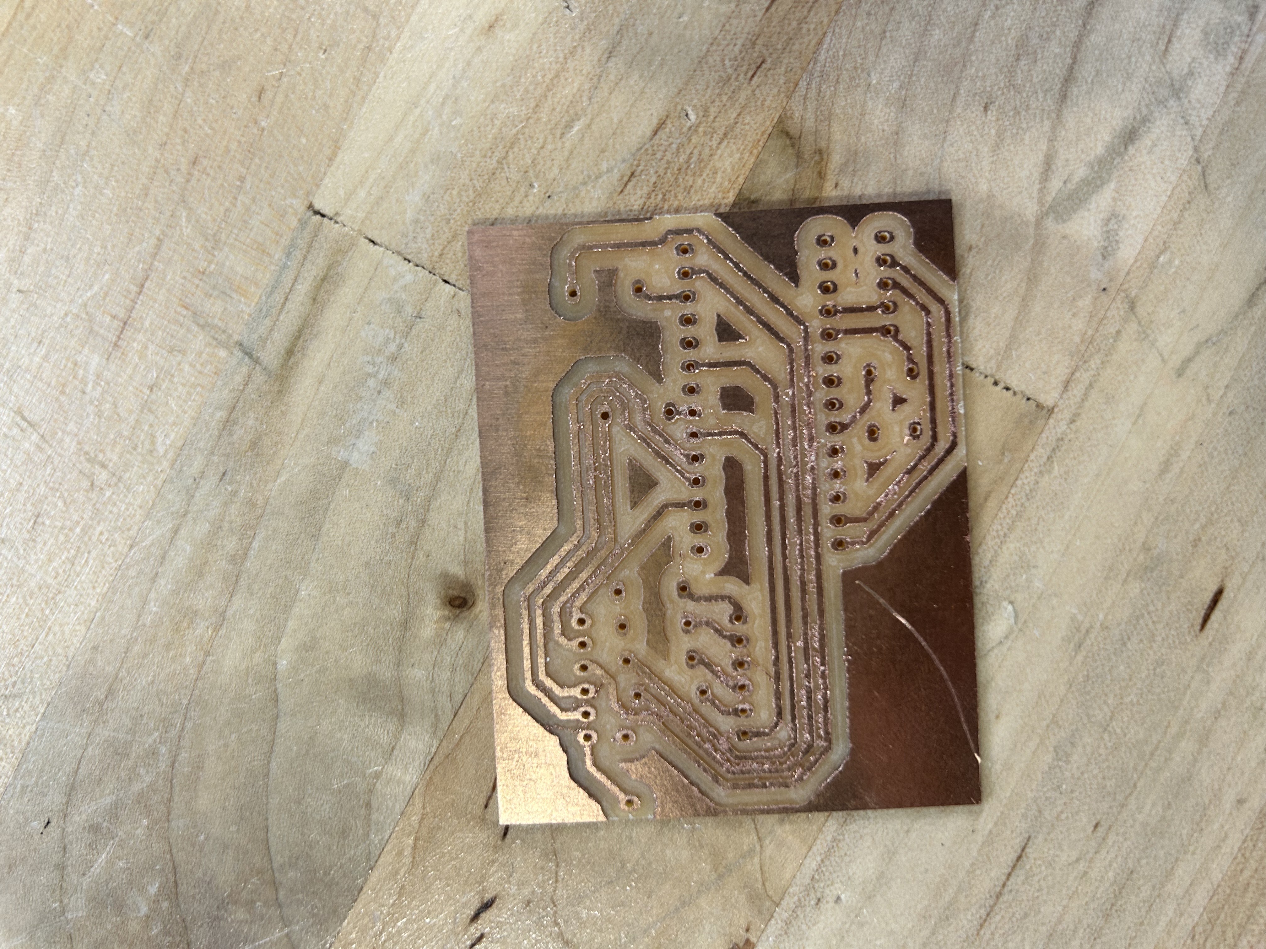just have to solder it now, and create a bigger button for reseting this. should be done by next week. hopefully the pcb works as intended and i don't burn traces while trying to create my own trace.