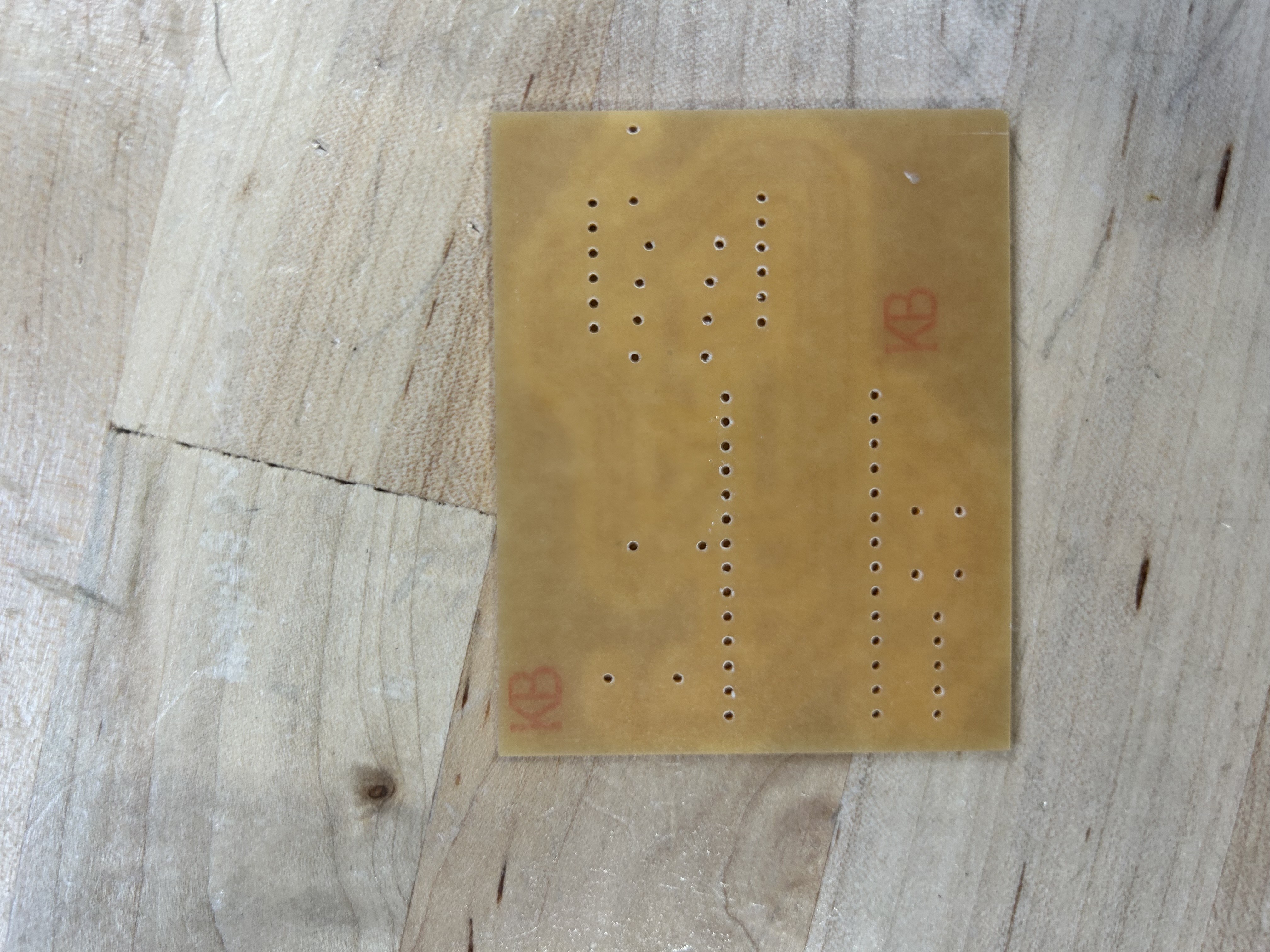 the hole was a bit small, so the pins were bent slightly. this meant that the distance for the holes on the original pcb wouldn'tn work, so i made another cardboard one after fixing it