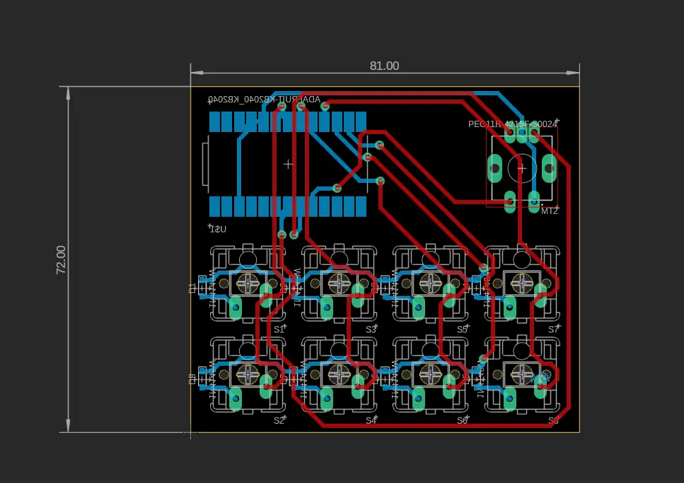 i also adjusted the packages for the pads on the switches and the encoder so our pcb mill wouldn't struggle when cutting it out.