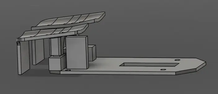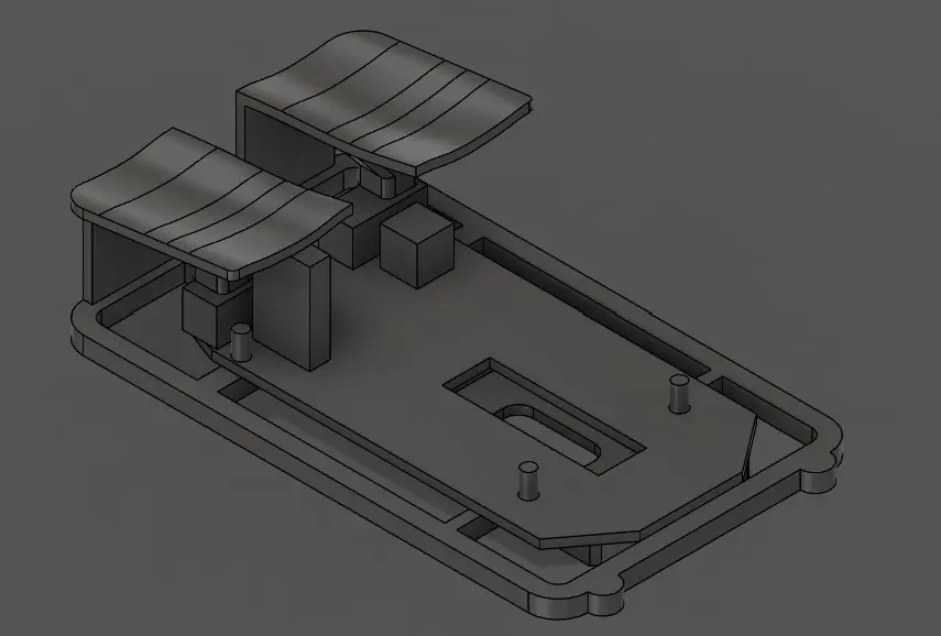 kept the same design but lengthened it to fit the new trigger orientation. also enclosed the front completely instead of leaving it open. this allows printing the shell and triggers together, though i might use a different attachment method to avoid supports.