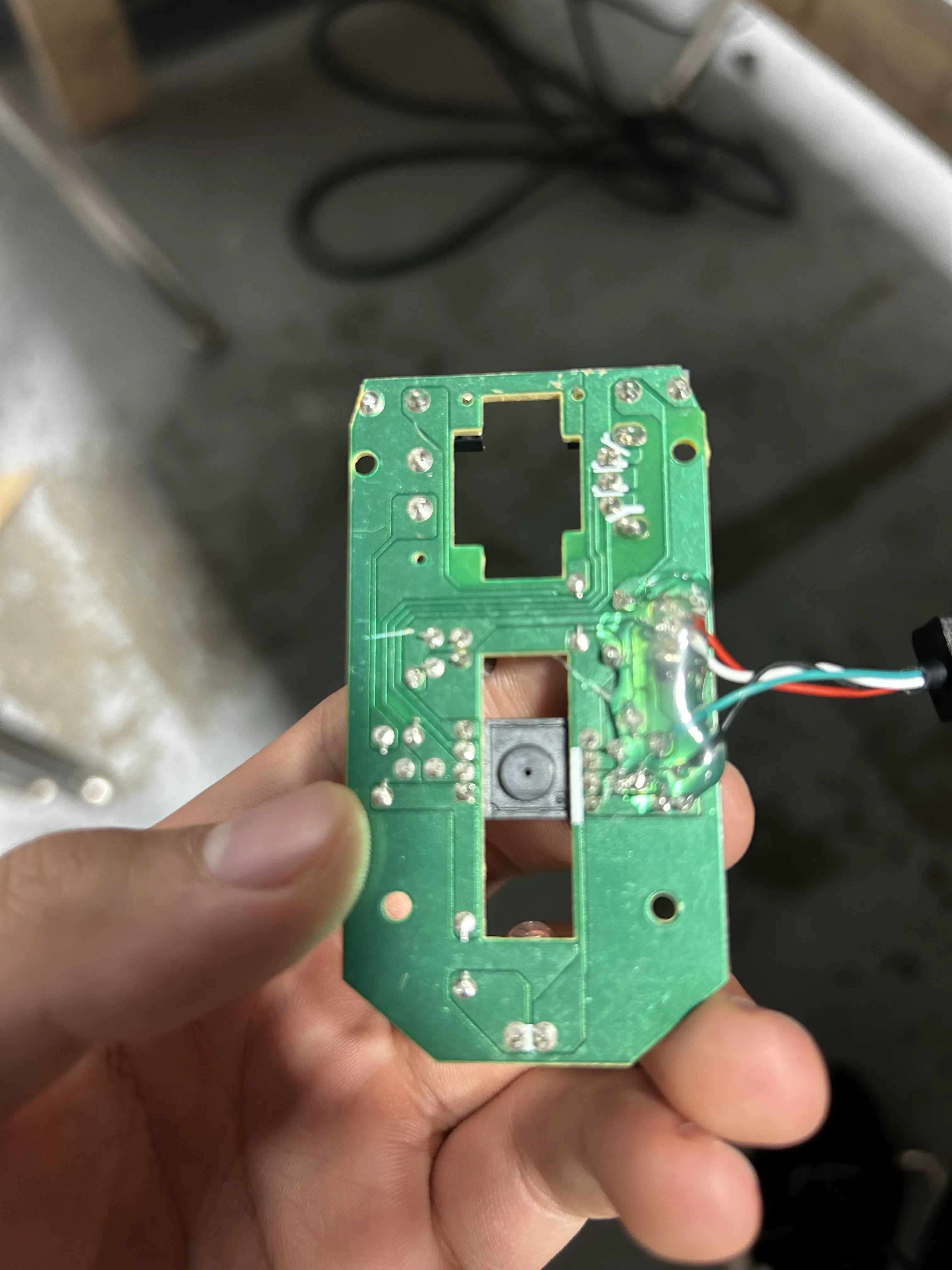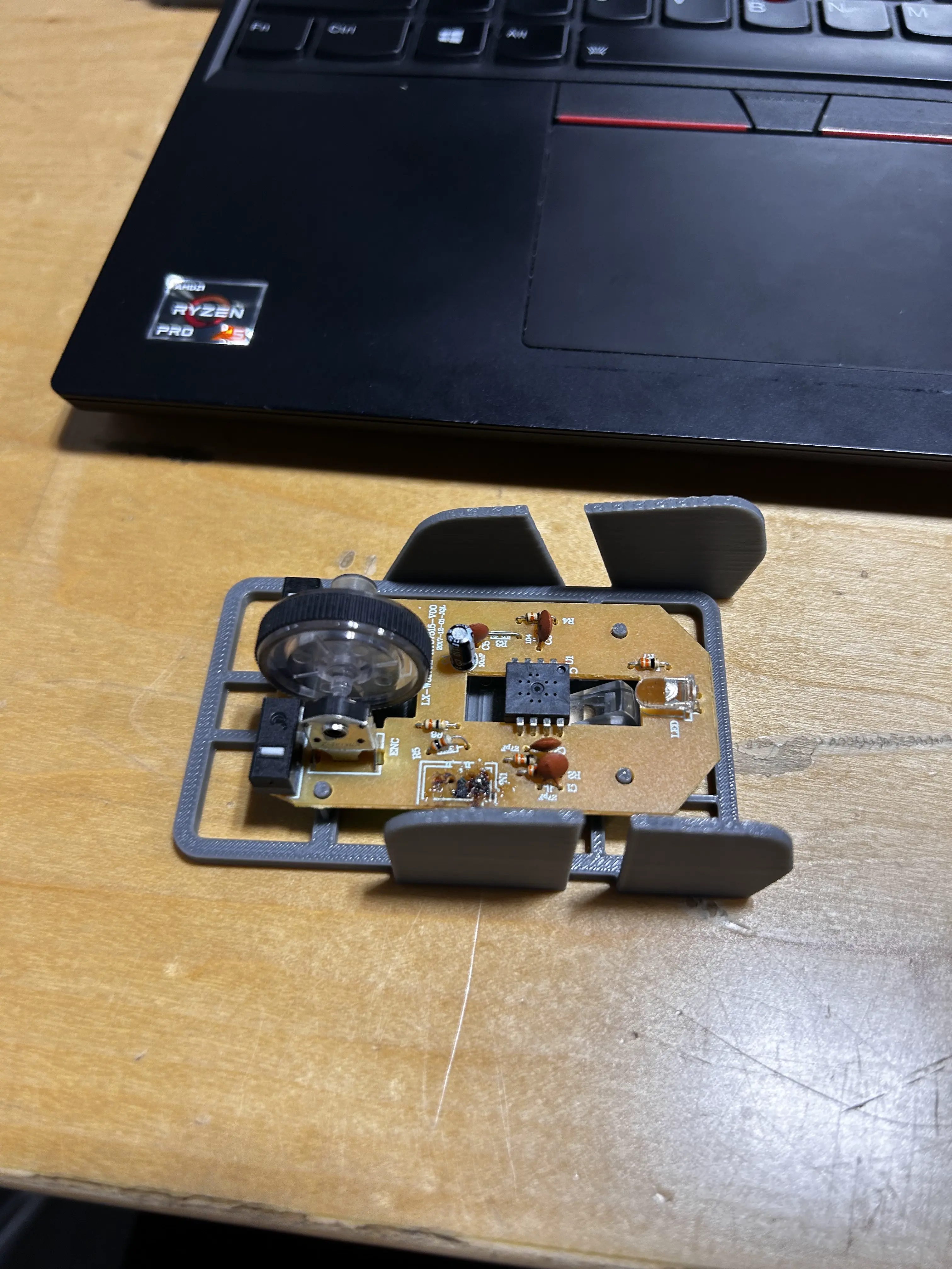 additionally, i tested the mouse buttons on the pcb to ensure that everything else was working correctly. additionally, i put the sensor block and pcb into the original shell to make sure the sensor was in fact working, and it was the stand height that was the problem.